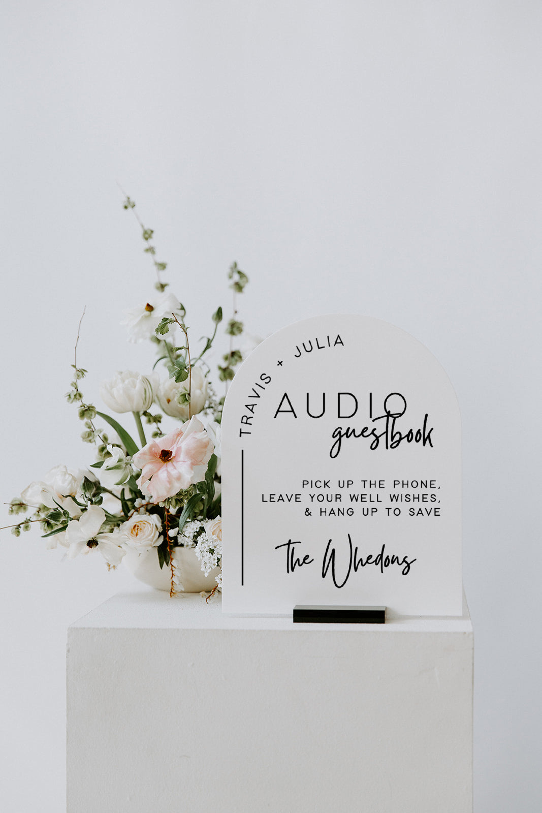 Crafted with great attention to detail and made from premium quality materials, our acrylic audio guestbook sign boasts a timeless design that effortlessly complements any event's theme. It's lightweight construction allows for effortless installation and portability, making it easy to move and display throughout your venue.
